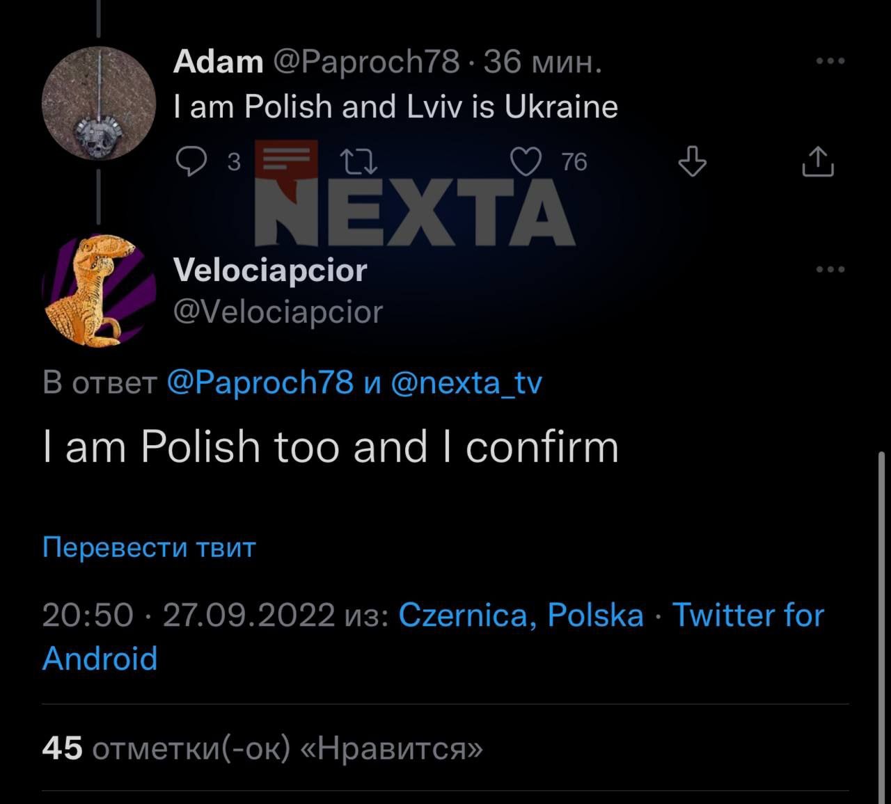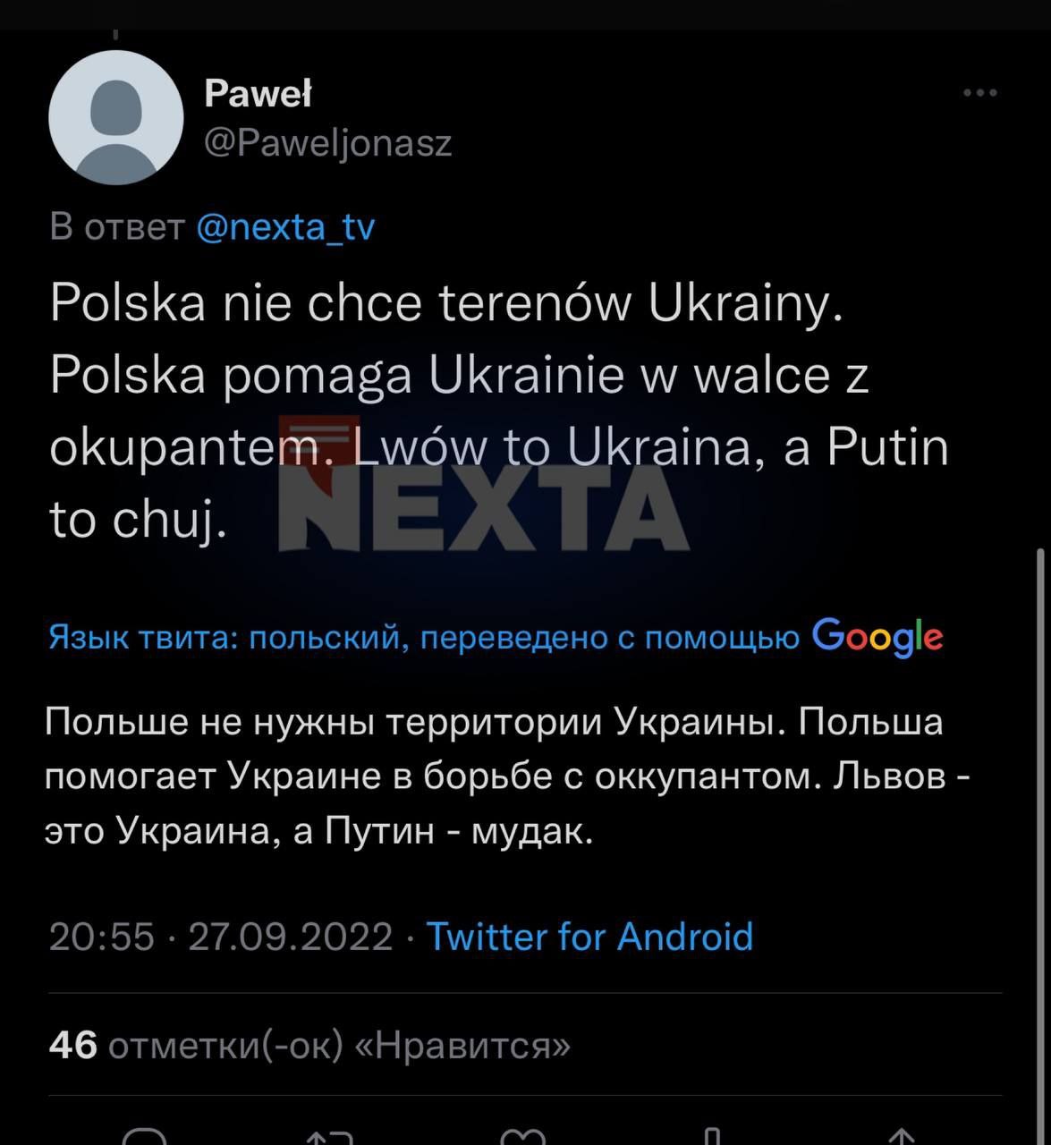 Росіяни також додають, що Польща нібито намагається повернути собі землі заходу України, які вважає своїми. Але користувачі соцмереж із Польщі вже адекватно відреагували на маніпуляції російської пропаганди, коментуючи: «Львів — це Україна». І вказуючи напрямок руху «рускому» воєнному кораблеві!