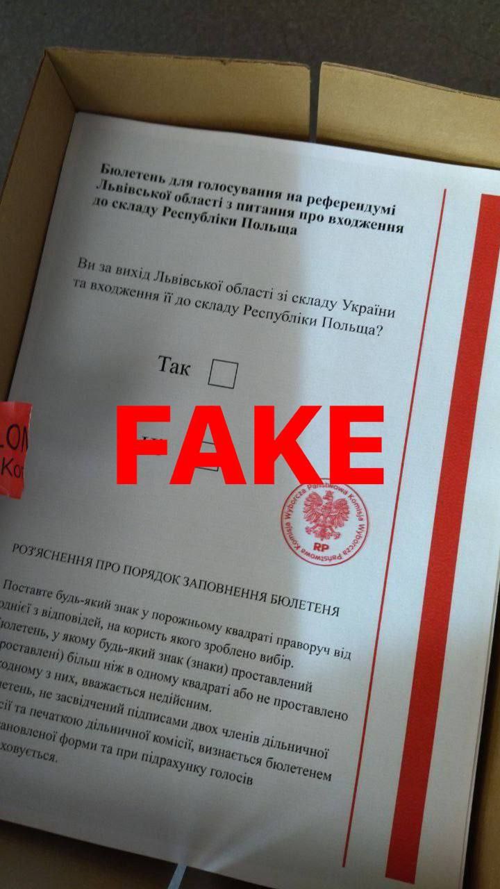 Хочете яскравий приклад того, як пропаганда рф майструє такі приводи? Будь ласка: на росії пропагандистські ресурси (написати ЗМІ — рука не підіймається) поширюють вигадку про те, що Львівська адміністрація нібито отримала бюлетені для голосування на референдумі щодо виходу області зі складу України та входження у склад Польщі. Про це пишуть кілька російських ресурсів. Зокрема сумнозвісна інфопомийниця «Царьград».