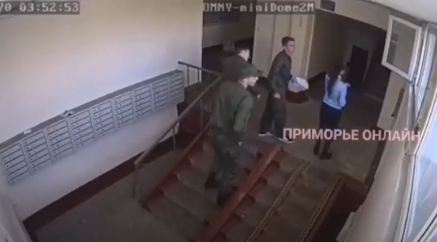 Ні, це не жарт. Про подібний випадок, що трапився нещодавно у Владивостоку, повідомляють самі ж жителі скрепної. Також вони публікують відео і камери спостереження, яка зафільмувала даний інцидент. На відео видно, як одягнений у камуфляж військовослужбовець проникає з вулиці у віконну кватирку, зістрибує в під’їзд та відчиняє зсередини двері групі «спільників», які чекали зовні.