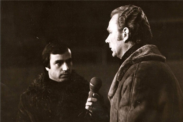— Звичайно. Це був матч в Києві між «Динамо» і ташкентським «Пахтакором» навесні 1974 року. Кияни перемогли з рахунком 2 : 1. На той час я уже мав досвід прямих ефірів і на телебаченні, і на радіо, хоча дуже хвилювався. Інколи в коментаторську кабіну навідувалися під час матчу травмовані динамівці, які не брали участь у грі, заходили колеги. Це ніяк не впливало на мою роботу. А їм було цікаво, як народжується телерепортаж. Спочатку моніторів не було і я коментував те, що бачив вболівальник на стадіоні. Згодом вони з’явились і ми дуже добре працювали з найкращим спортивним телережисером країни Миколою Рябовим. На жаль, його вже з нами немає. Напевно, складно знайти вид спорту, в якому б до тонкощів і деталей не розбирався Микола, і цього не могли не помічати ті, хто дивився телетрансляції в його виконанні.