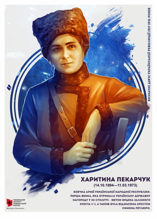 «У 1917-му вона взялася за українізацію трьох полків російської армії, розташованих у Сімферополі, організувала там український хор та аматорський гурток, влаштовувала літературні вечори, разом із кримськими татарами видавала газету. На початку 1918 року Харитина втекла від переслідувань російських більшовиків на Полтавщину, та згодом, уже навесні, її схопили у Кременчуці. Витерпіла чекістські катування, а навесні 1918 року після звільнення Кременчука від російських окупантів Армією Української Народної Республіки пішла на військову службу в полк імені Івана Богуна. Згодом очолила санітарний потяг загону «Запорозька Січ» Армії УНР. У бою з більшовиками героїня була поранена в ногу, із денікінцями – у живіт. Увійшла в історію збройної боротьби за незалежність і як учасниця Першого зимового походу Армії УНР».