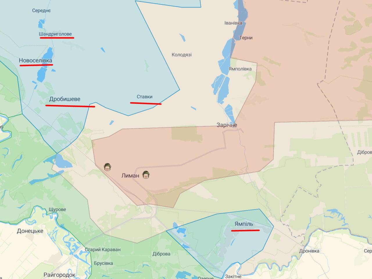 «російське угруповання в районі Лимана оточене. Населені пункти Ямпіль, Новоселівка, Шандриголово, Дробишево, Ставки – звільнені, там продовжуються стабілізаційні заходи», – повідомив Сергій Череватий.
