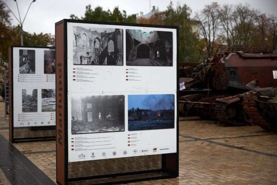 Експозиція складається з 16 пар світлин, які демонструють зруйновану столицю Польщі під час Варшавського повстання у 1944-му році та Маріуполь і міста Київщини, які постраждали від російської агресії у 2022 році.