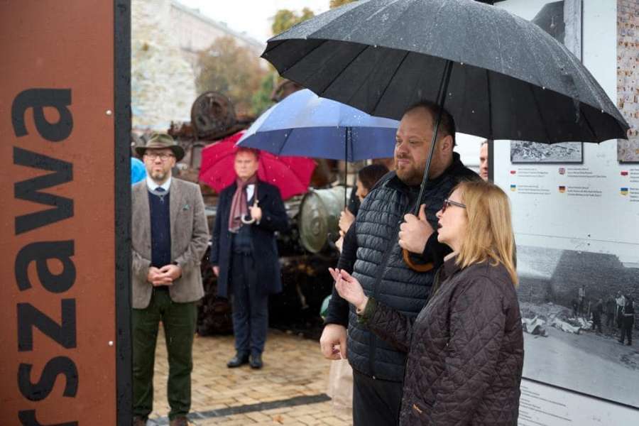 Голова Верховної Ради України разом із віцеспікеркою Сейму Республіки Польща Малгожатою Госєвською відкрили на Михайлівській площі Києва міжнародну польсько-українську виставку «Варшава-Маріуполь — міста руїн, міста боротьби, міста надії». Про це повідомляє Верховна Рада України.