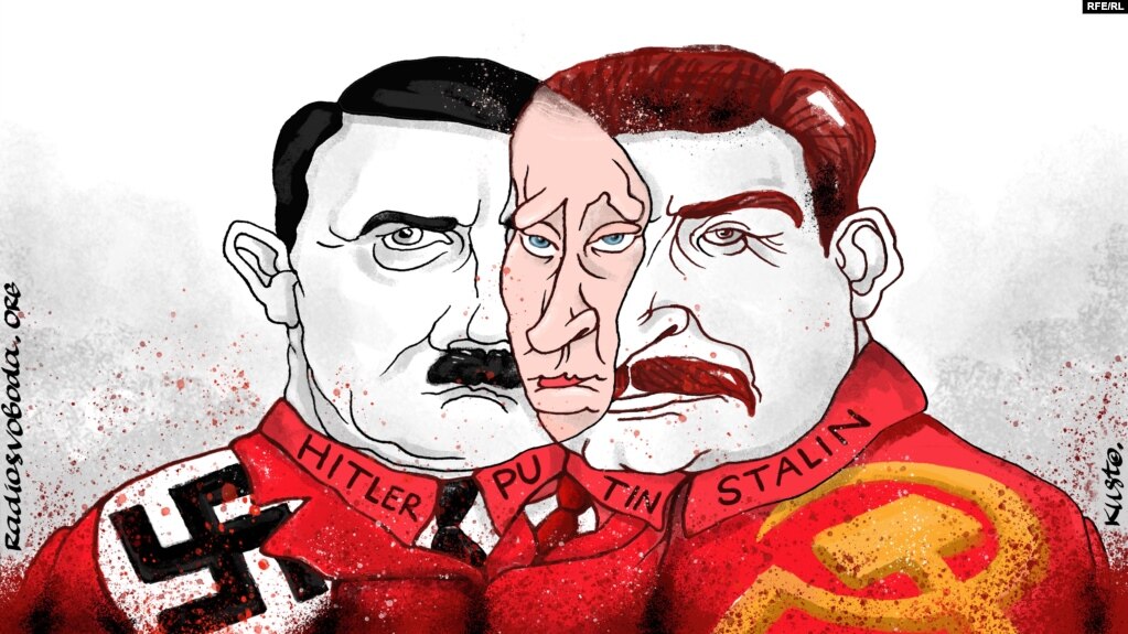 Захопивши силою зброї і тимчасово окупувавши українські землі, путін намагається відтворити в сучасному світі технології тоталітарних режимів ХХ століття – комуністичного і нацистського. Наочним прикладом для російського диктатора є насамперед дії сталіна щодо країн Балтії у 1939−1940 роках. Вони видаються йому вдалим зразком для наслідування, оскільки зрештою забезпечили входження Естонії, Латвії та Литви до складу срср.