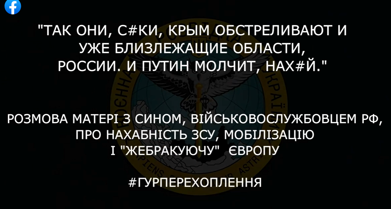 Головне Управління розвідки Міноборони України оприлюднило аудіоперехоплення розмови матері з сином, військовослужбовцем рф, про нахабність ЗСУ, мобілізацію і «жебракуючу» Європу.