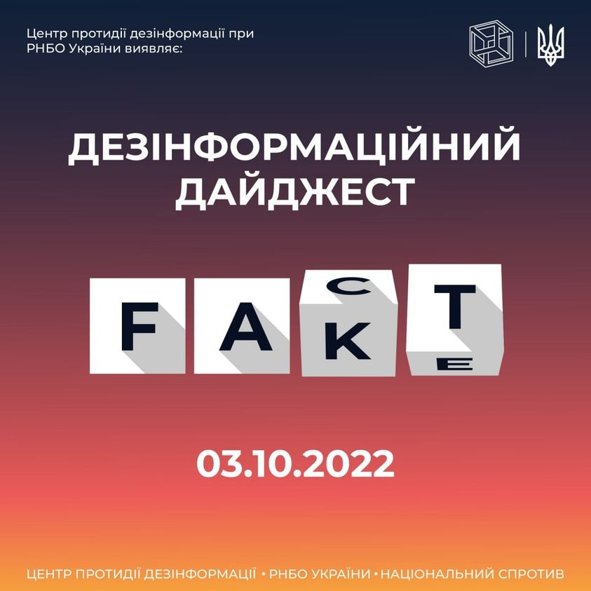 Центр протидії дезінформації при РНБО України виявив, що протягом минулого дня окупанти поширили таку дезінформацію та маніпуляції: