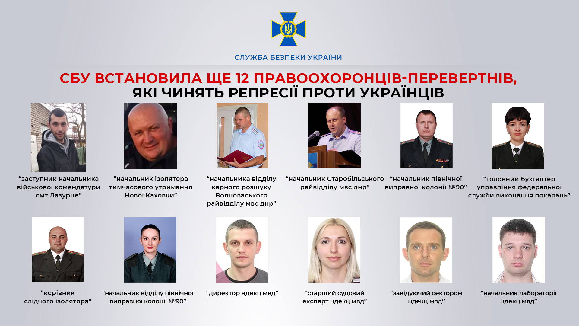 Служба безпеки України зібрала докази добровільної співпраці з ворогом ще 12 колаборантів, які вступили до так званої «правоохоронної системи» рф на тимчасово окупованих територіях України.