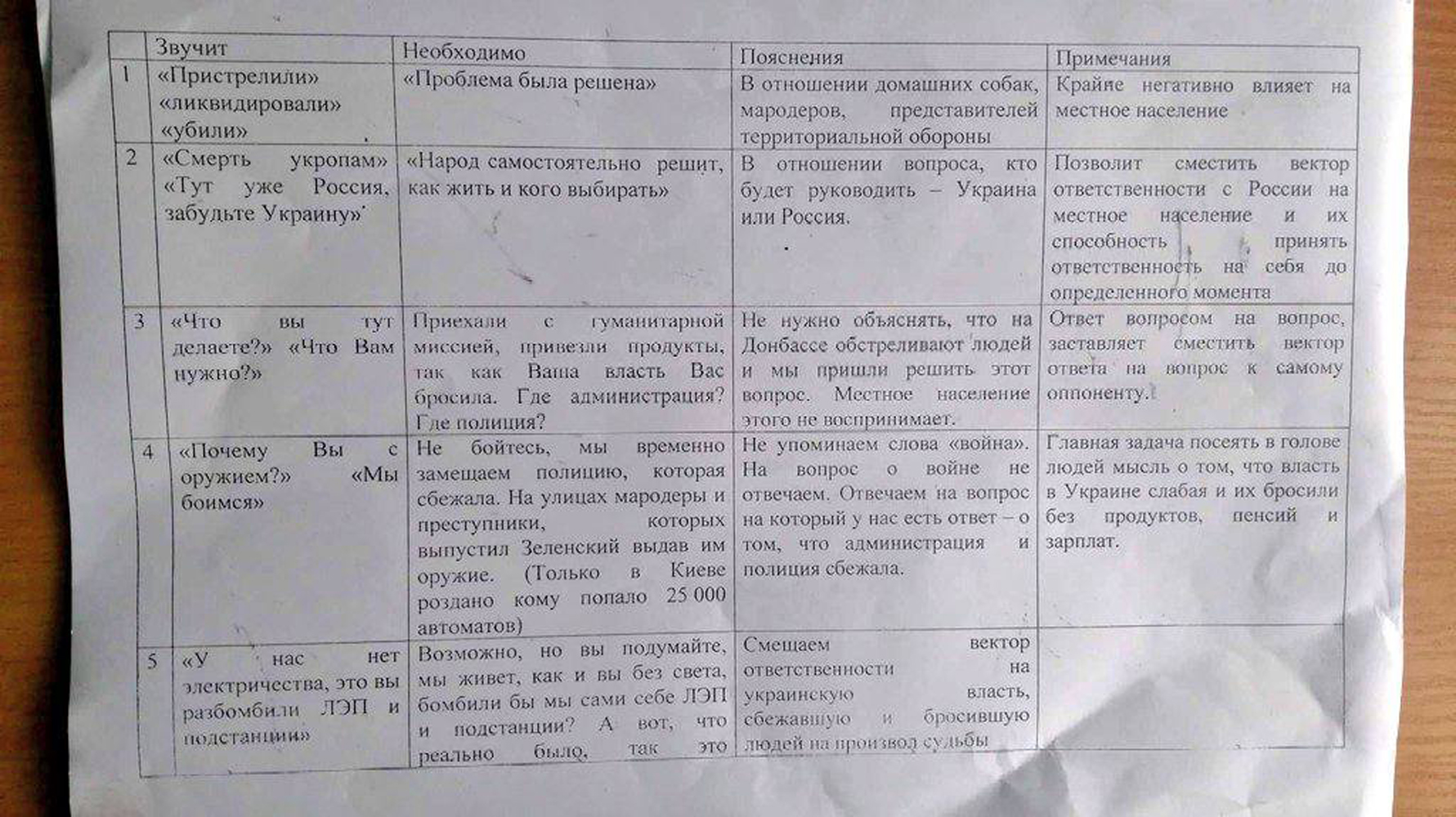 Ще одним підступним провокативним прийомом рашистів стало вкидання тези «Україна вас покинула», поліція й адміністрація втекли, тож тепер російська армія змушена підтримувати на окупованих територіях порядок. Згодом стала навіть відома знайдена на Київщині методичка з порадами окупантам, як спілкуватися з місцевими мешканцями. На Харківщині загарбники також слово в слово відтворювали зафіксоване в цьому практичному посібнику рашистів.