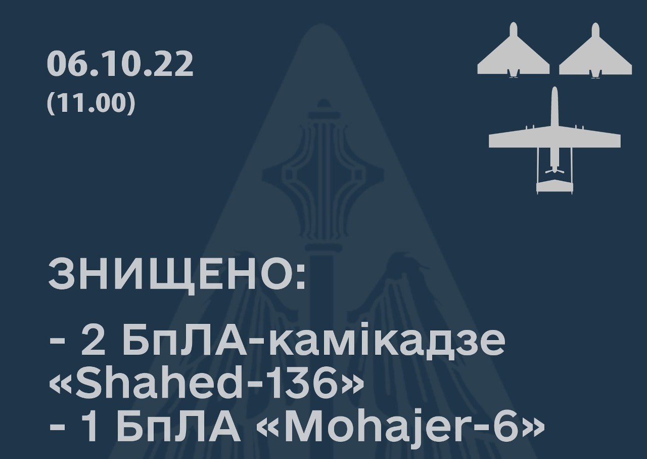 Сьогодні, 6 жовтня, ворог продовжив атакувати Україну безпілотниками іранського виробництва.