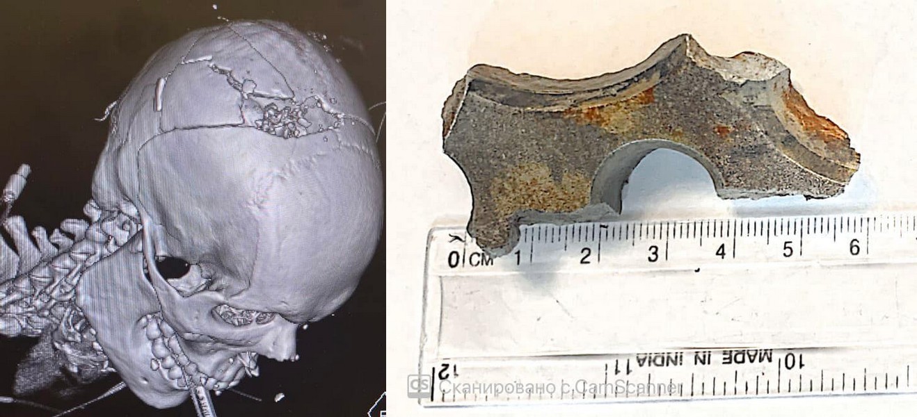 — Останній випадок… У пацієнта вкрай тяжке мінно-вибухове осколкове черепно-мозкове поранення. На межі життя й смерті. Металевий осколок — 6 см у найбільшому вимірі, який пробив череп, ви можете побачити самі.