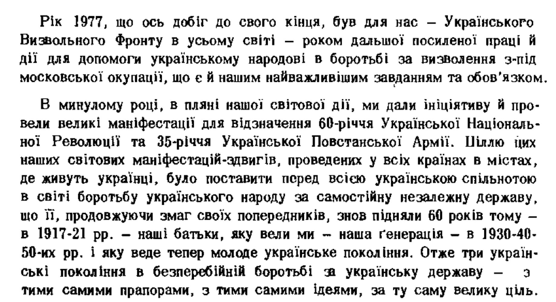 8 жовтня 1977 року в Нью-Йорку відбувся мотопохід під гаслом «Проти поневолення України московським комунізмом». Провели його представники Організацій Українського Визвольного Фронту.