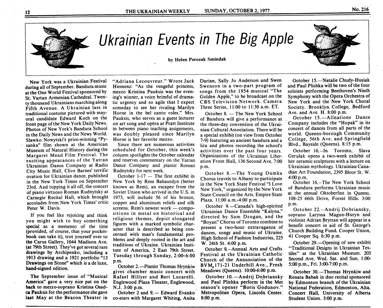 Тільки впродовж вікенду 8-9 жовтня 1977 року й лише в американському Нью-Йорку українці провели кільканадцять заходів, спрямованих на єднання української спільноти Америки, збереження, розвиток та популяризацію української культури й підтримку боротьби за поновлення поневоленої радянським режимом української незалежності.