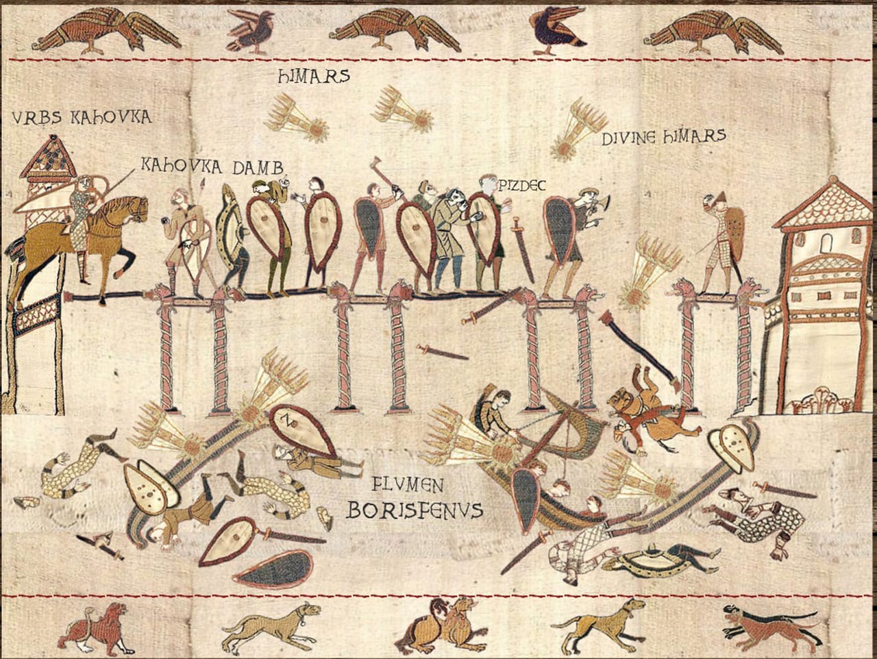 До того ж треба було придумати, як би середньовічний художник зобразив сучасні види зброї, не розуміючи їхньої природи. Наприклад, він міг би бачити або чути, як працюють «хаймарси», однак, найімовірніше, сприйняв би їх як божественне втручання. Так на зображеннях з’явилися DIVINE HIMARS — «божественні хаймарси». Для них на основі наявних фігурок довелося розробити такі нові зображення, які мали вписуватися в загальний середньовічний стиль і містити водночас дрібку гумору.