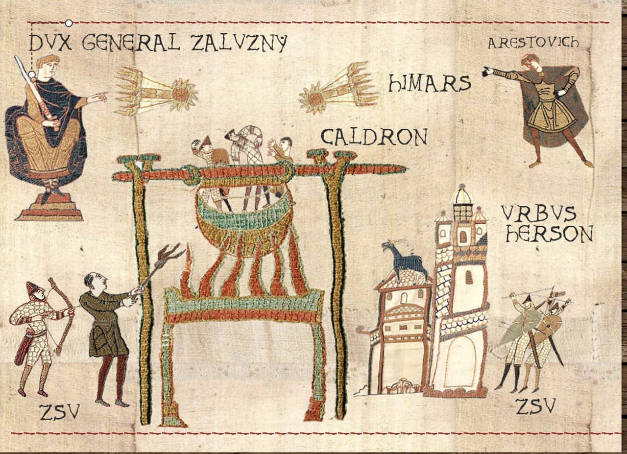 Але є й інші сюжети, так би мовити, «вічні» — робота М777, Байрактарів і Хаймарсів. І звичайно, caldron, чи то пак «котел», куди ж без нього.