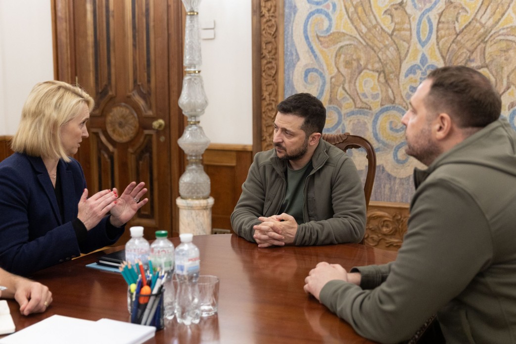 Президент Володимир Зеленський і керівник Офісу Глави держави Андрій Єрмак провели зустріч із Надзвичайним і Повноважним Послом США в Україні Бріджит Брінк і заступником голови дипломатичної місії Сполучених Штатів Крістофером Смітом.