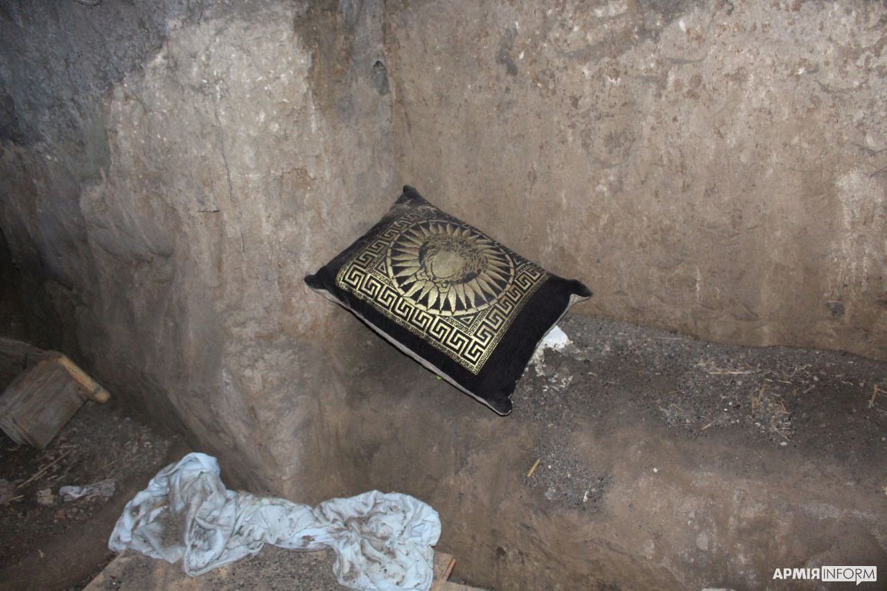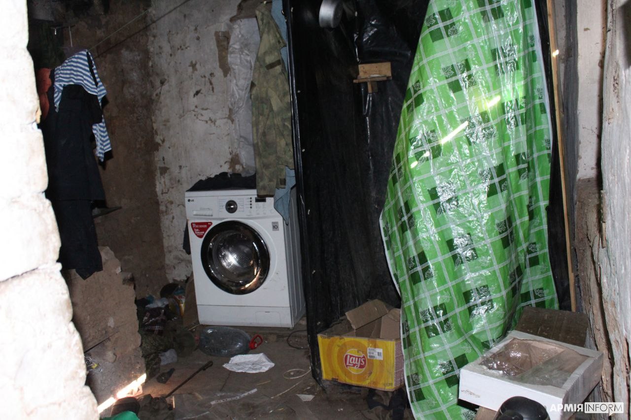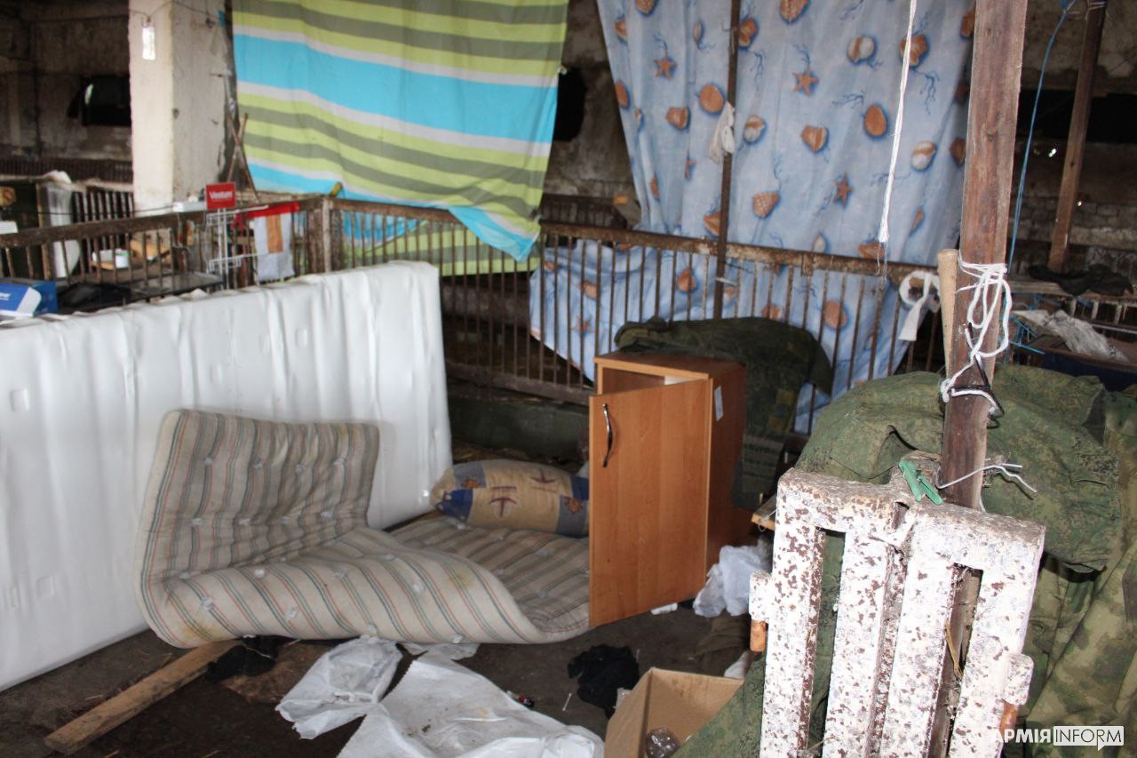 Звичайно, в найкращих традиціях русні свинарник завалений краденими речами місцевого населення: жіночі валізи, дитячі візочки, морозильна камера з магазину, великогабаритна домашня техніка та настінний годинник, стилізований під ручний. А подушки, столи та дивани дозволили з витонченим смаком облаштувати побут на купі гною. Одна з місцевих мешканок під час нашого візиту навіть впізнала, в якому з дворів раніше були ці речі.