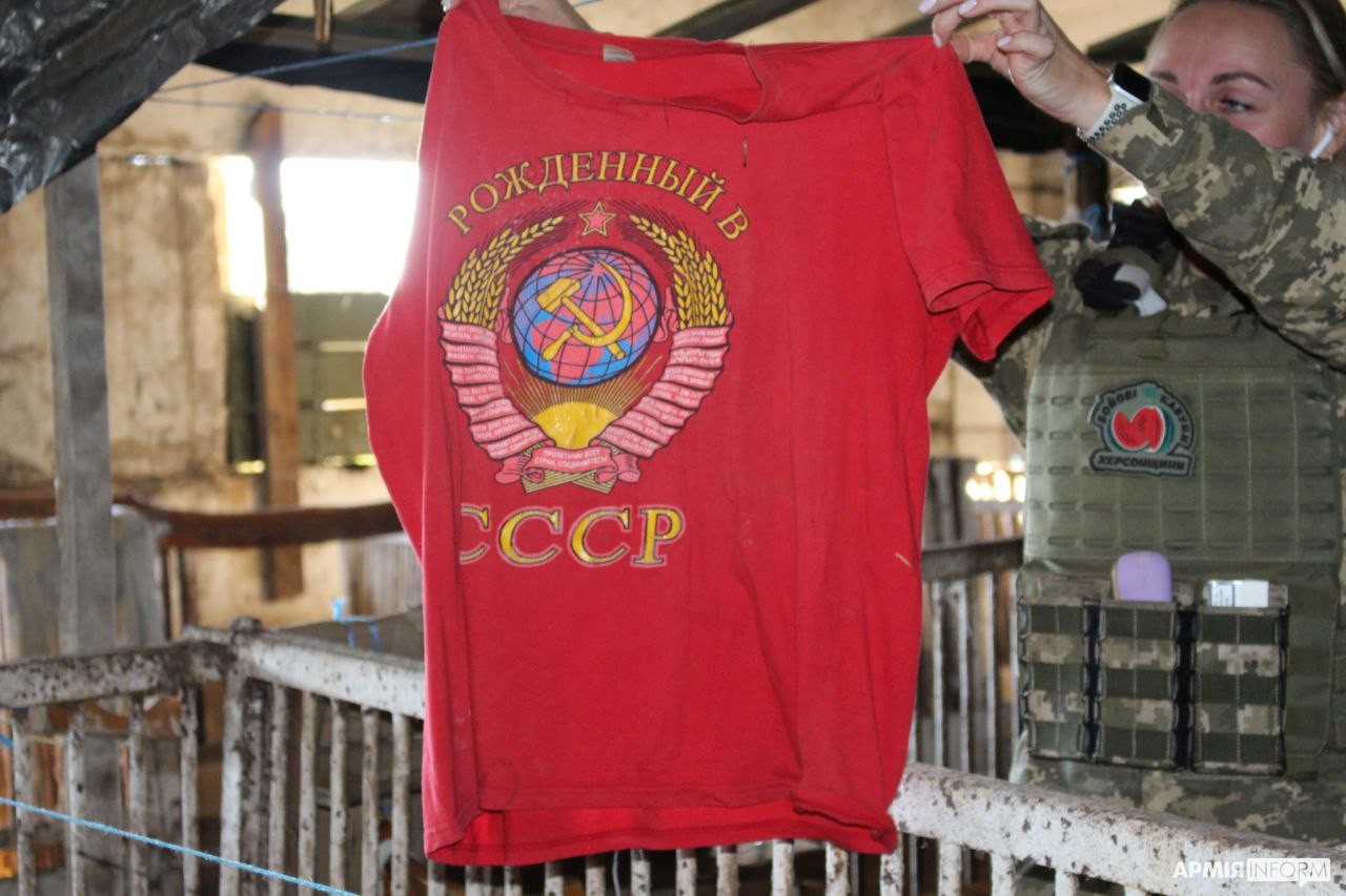 Проте не краденими речами єдиними: особливо патріотично налаштовані «рускіє» залишили футболку «Рождённый в СССР», схоже, що це ледь не головна їхня заслуга. Проте чомусь невідкритими залишились консервовані «Щи», привезені з челябінська: невже не смачно, худобо?