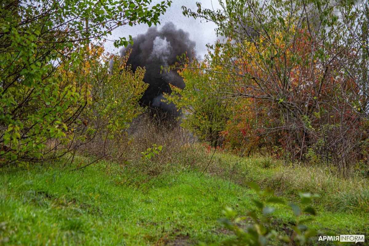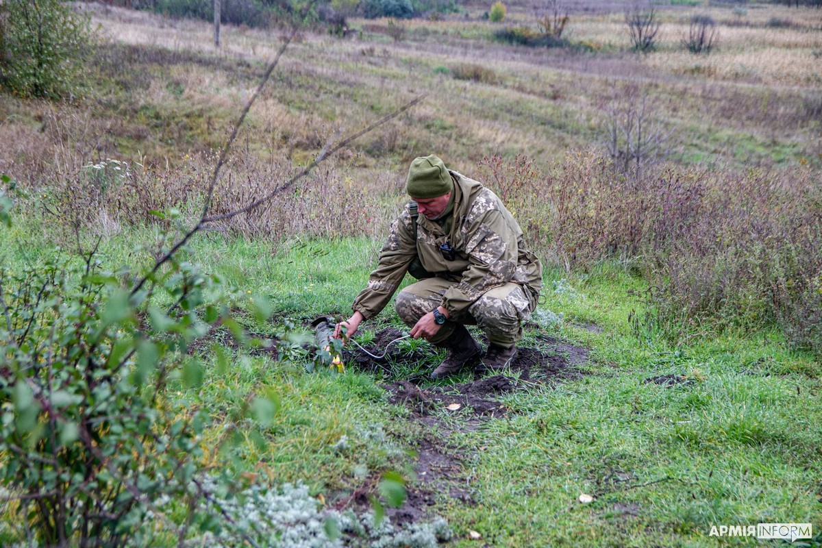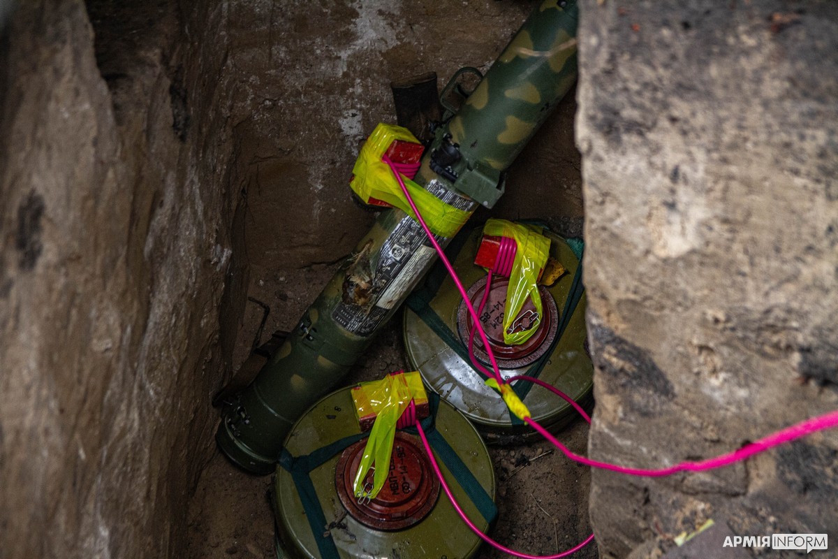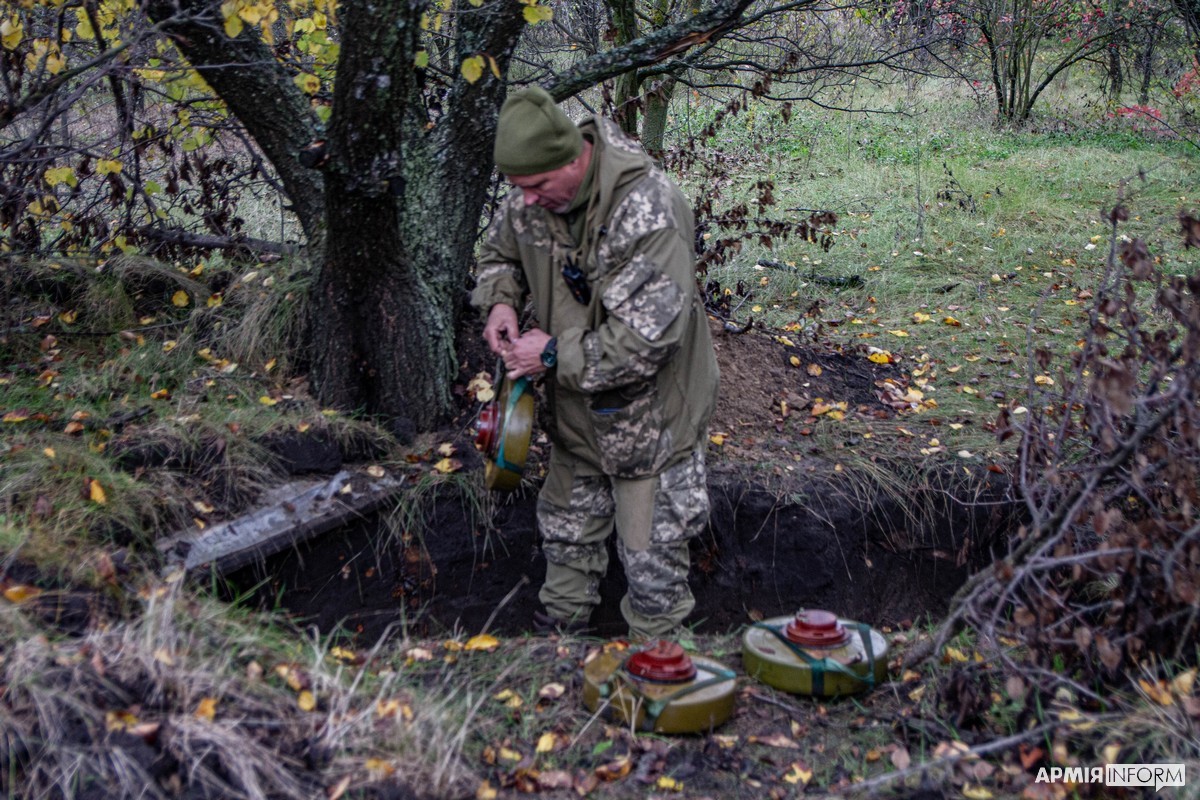 − Кілька днів тому ми проводили інженерну розвідку в цій місцевості. Жителі селища розказали про цей склад боєприпасів на колишніх позиціях ворога. Крім протитанкових мін, ми виявили пошкоджений «Джміль», постріл РПГ, патрони для стрілецької зброї та снаряди для СПГ, які передамо на склад РАО. Решту вибухонебезпечних предметів знищуємо, − каже «Ведмідь».