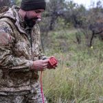 Сьогодні пощастило — протипіхотних «сюрпризів» під ними не було. Вибухонебезпечні предмети зносять до колишніх окопів рашистів у саду під деревом. Далі алгоритм дій особливо не відрізняється від того, який сапери застосовували під час підриву першого РПГ: фіксують скотчем обмотані шнуром три 400-грамові тротилові шашки, відрізають вогнепровідний провід, підраховуючи відстань до укриття — той горить зі швидкістю 1 см за секунду, під’єднують його до капсуль-детонатора та підпалюють.