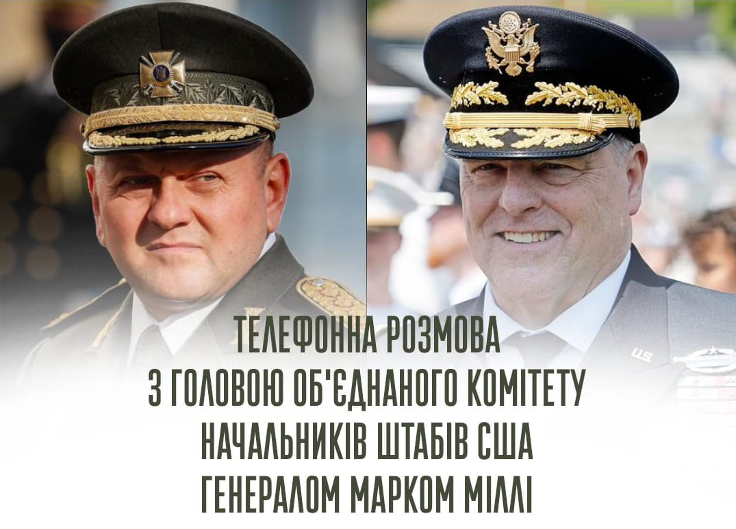 «Провів телефонну розмову з Головою об’єднаного комітету начальників штабів США генералом Марком Міллі», — повідомив Головнокомандувач Збройних Сил України генерал Валерій Залужний.