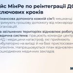 Відновила діяльність на деокупованих територіях Укрпошта: організувала як доставку пенсій, так і надання одноразової фінансової допомоги людям. За спільної ініціативи Мінреінтеграції та Укрпошти кожен, хто пережив окупацію, отримує від Товариства Червоного Хреста України одноразову допомогу в сумі 1200 грн. На сьогодні мешканці Харківщини отримали вже понад 14 млн грн. Мешканці звільненої Херсонщини – понад 1,4 млн грн, Донеччини – понад 1 млн грн.