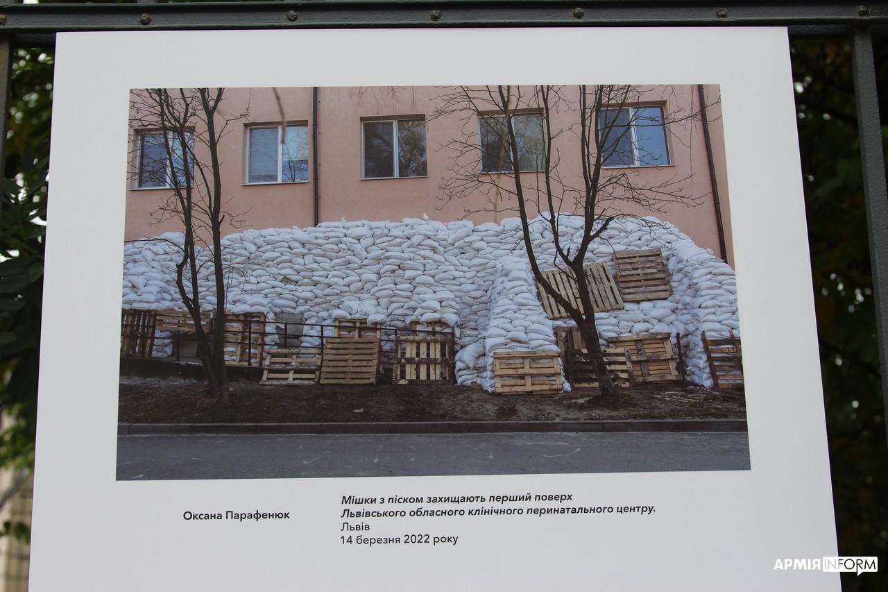 – Звісно, в Україні кожен відчуває війну, але світлини допомагають побачити, що відбувається в іншому куточку країни. Багато фото викликають емоції, почуття, співпереживання іншому досвіду. Окрім того, вони є історичним свідченням, – зазначила пані Оксана. – Щодо особисто моїх переживань, то пам’ятаю, як першими відчуттями 24 лютого, крім шоку, а особливо після того, як окупували Маріуполь, стали думки про те, як мало ми знімали рідні міста. Я зрозуміла, наскільки б цінними були фото квітучого Маріуполя та інших міст. Це стало нагадуванням, що потрібно знімати багато не тільки, коли війна. Ще зрозуміла, наскільки важко працювати українським фотографам, адже всі події, які фони фіксують, відбуваються з ними та їхніми рідними. Портрет із тренувань тероборонівців уособлює для мене ситуацію, коли дуже багато і молодих людей, і старших опинились у стані підготовки до війни, коли всі ще сподівались, що великої війни не буде. Інша робота – блокпост, який із першого дня широкомасштабного вторгнення будували всім селом на Вінниччині, свідчить про те, що кожен українець, чи то цивільний, чи то військовий, готовий до опору.