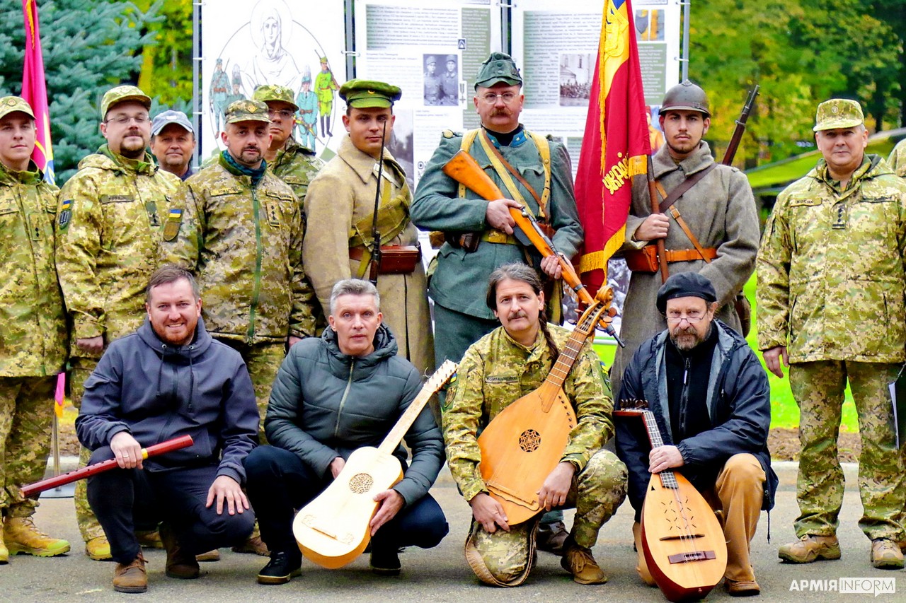 До привітань від гостей урочистого відкриття мобільної виставки «Під заступництвом Святої Покрови» доєднався народний артист України Тарас Компаніченко. У виконанні митця пролунали пісні часів Національно-визвольних змагань (1917–1921 років) та власні твори, присвячені сучасним захисникам Батьківщини.