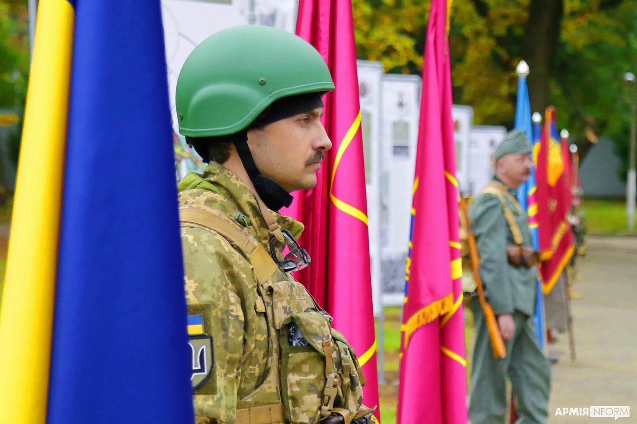 — Усім військовослужбовцям, хто сьогодні боронить нашу Україну, дякую за ваш ратний труд. Усі ветерани мого покоління чекають від вас перемоги! Завдяки вашій мужності, професіоналізму та героїзму ми, військові ветерани, маємо змогу спокійно дожити свій вік у мирі та злагоді, — наголосив голова Ради ветеранів Солом’янського району м. Києва генерал-лейтенант у відставці Борис Парафейников. — Хочу зауважити, що матеріали цієї виставки планую використати у переобладнанні кабінету національно-патріотичного виховання молоді Ради ветеранів та передати в кожну школу нашого району. Вітаю зі святом наших українських захисників і захисниць!