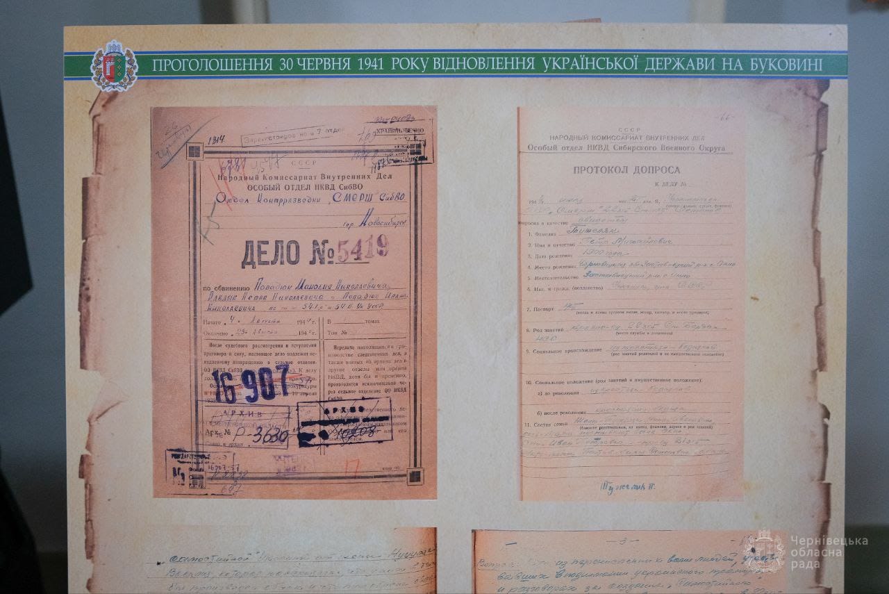 У приміщенні Чернівецької обласної ради триває виставка, присвячена 80-річчю УПА. Підготував експозицію про героїчну й наразі маловідому сторінку з історії регіону Державний архів Чернівецької області.