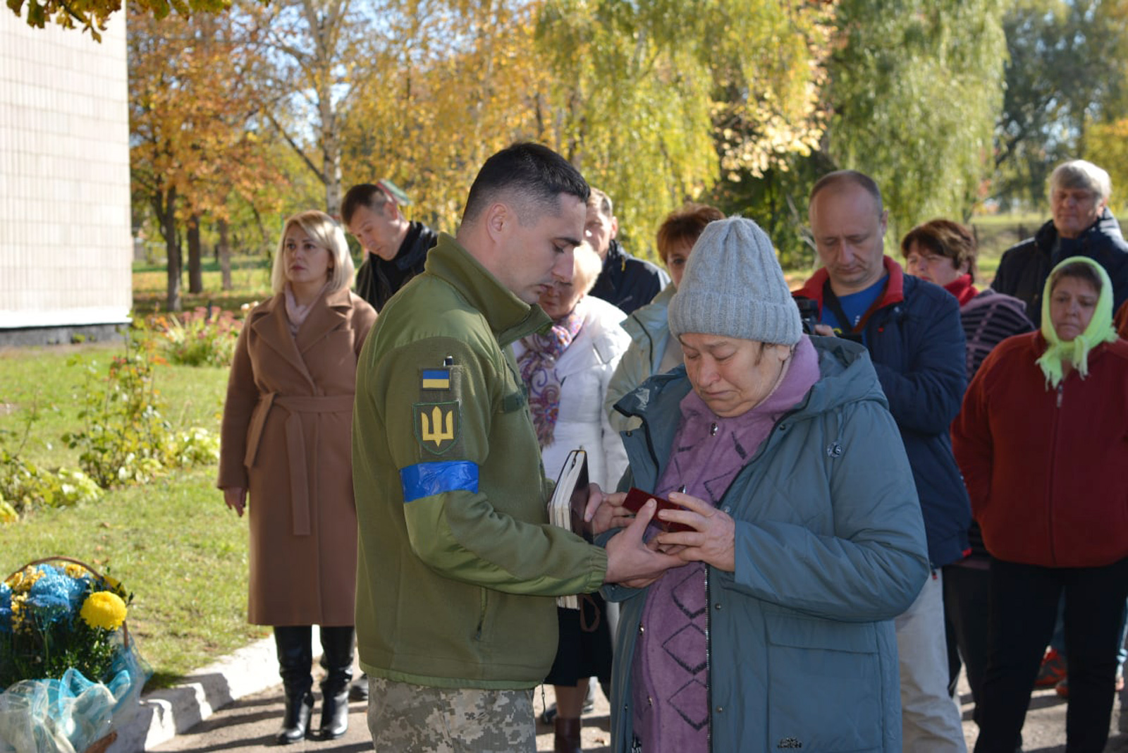 Під час відкриття пам’ятної дошки військові передали матері полеглого захисника Надії Михайлівні орден «За мужність» ІІІ ступеня.