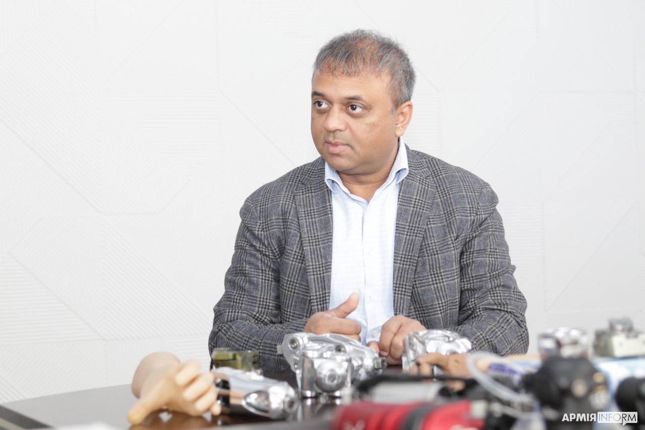 Мій співрозмовник продемонстрував, як діє механічний протез верхньої кінцівки, який компенсує можливість реалізовувати захвати та утримання різних предметів. Саме такі протези й передала Індія для потреб наших поранених воїнів.