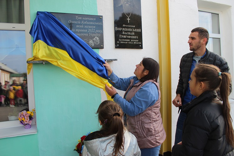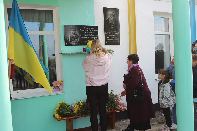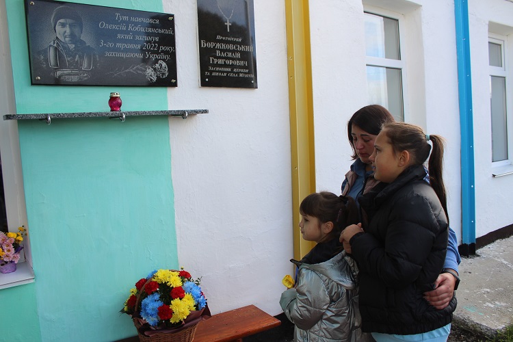 Право відкрити дошку було надано дружині загиблого солдата Оксані Кобилянській та їхнім донечкам. На подвір’ї ліцею зібралося багато мешканців села, серед яких були ті, хто пам’ятає Олексія Кобилянського завжди усміхненим, життєрадісним та енергійним чоловіком.