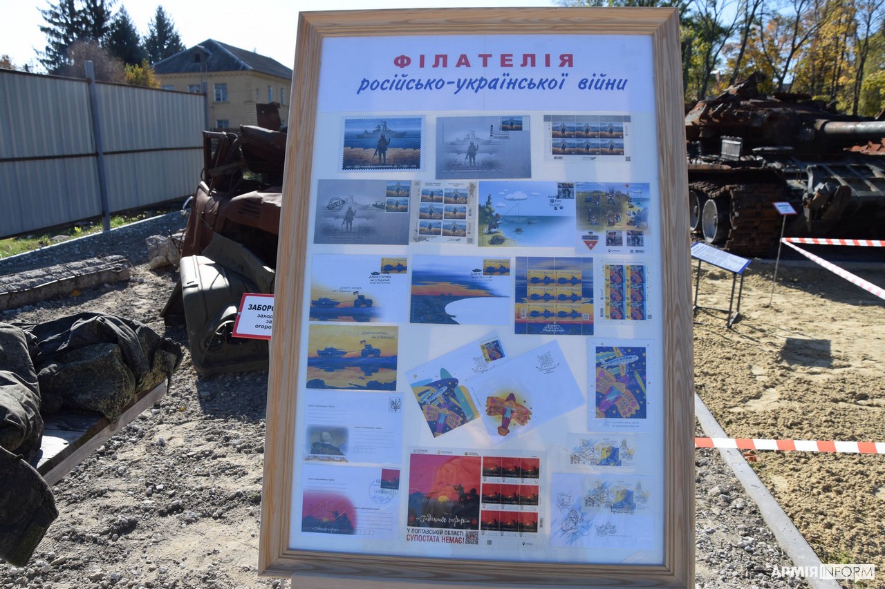 Окрім цього, гості заходу змогли побачити обмундирування окупантів, їхні сухпаї та інші особисті речі, залишені росіянами під час відступу. Також окремий куточок експозиції був присвячений новітнім українським маркам із серії російсько-української війни.