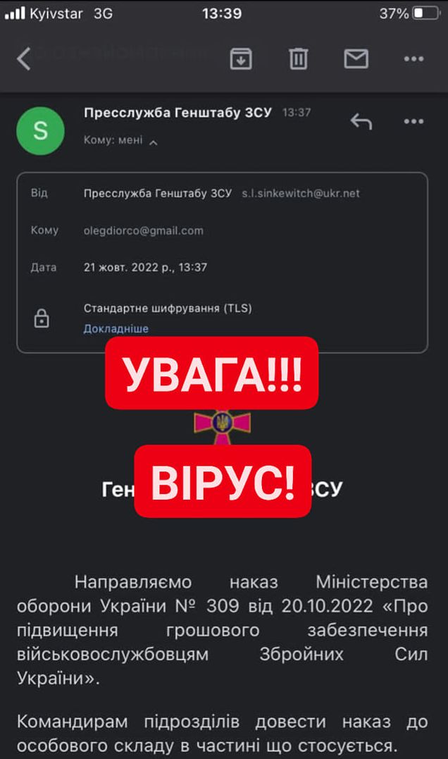 Останнім часом на електронні скриньки та у месенджери почали надходити листи нібито від Пресслужби Генштабу ЗСУ.