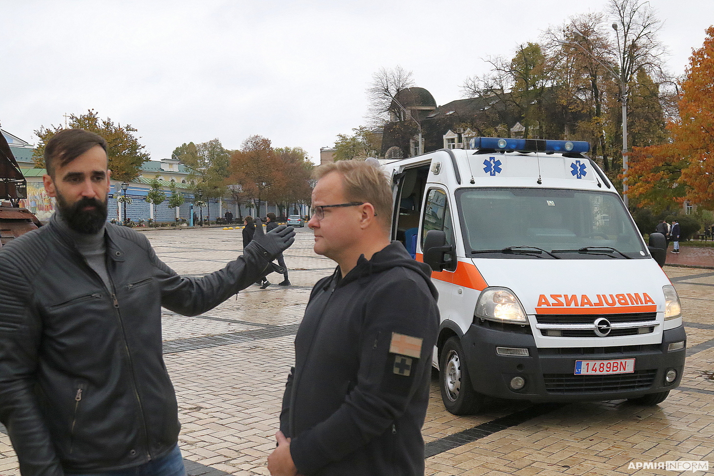 Сьогодні в столиці на Михайлівській площі українським військовим передали карету швидкої допомоги, повністю укомплектовану медикаментами. Ця допомога стала можливою завдяки громадянам Фінляндії.