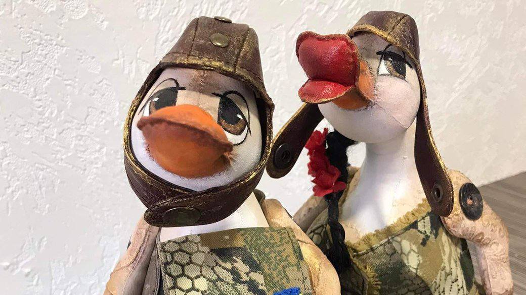 – Бойових гусаків вирішила створити після заяви представника міноборони росії про розробку в Україні біологічної зброї та перенесення її перелітними птахами. Спочатку вони були більш схожими до гусаків: з лапами і крилами, але у військовій формі. Згодом вирішила робити крила більш схожі до рук і з м’язами. Пізніше самі українці надихнули створити гуску-захисницю, аби нашому бойовому гусаку була пара.