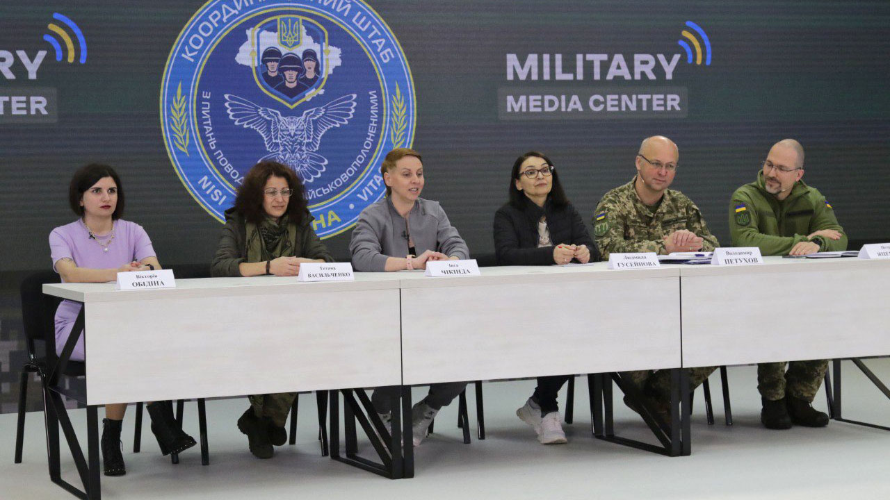 Четверо представниць групи із 108 жінок, яких звільнили 17 жовтня під час обміну полоненими з державою-агресором, взяли участь у брифінгу Координаційного штабу з питань поводження з військовополоненими щодо визволених із російського полону українських жінок у Military Media Center.