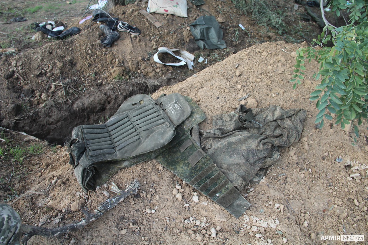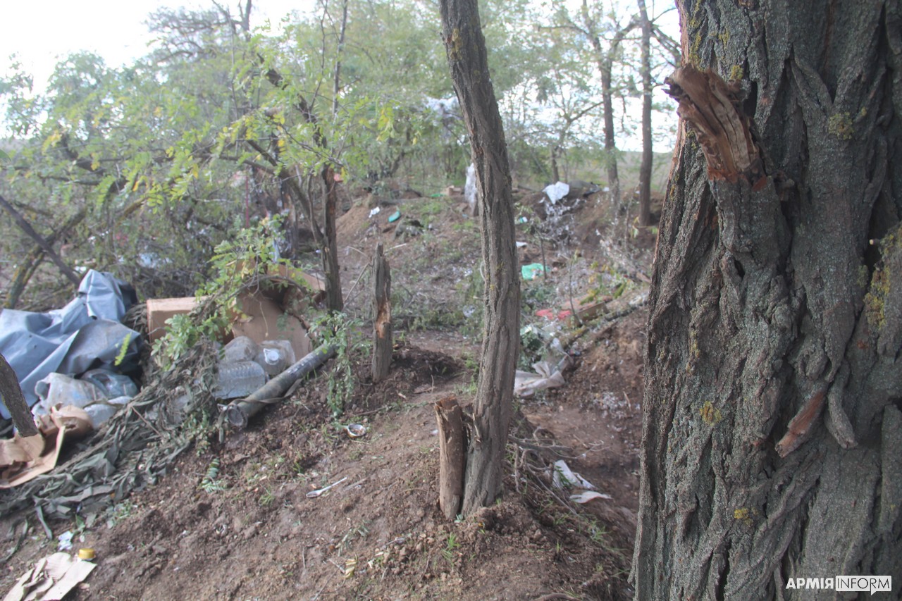 Згадуючи подібний опорний пункт російських військ під Осокорівкою, з траншеями й укріпленнями, з якого під час наступу кілька днів тому наші бійці примусили втікати окупантів, помічаєш просто разючі відмінності. Росіяни залишили за собою гори смітття.