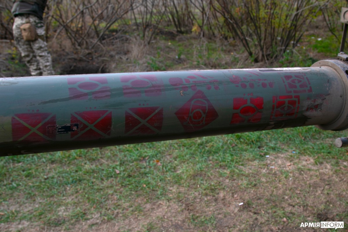 — Це ми знищили не одну батарею «саушок», склади з БК, багато БМП і танків, а також дві С-400. Останні дві знищили максимально влучно: обидва постріли прямо в ціль. Але коли кількість знищеної техніки перевалила за 50 одиниць, ми перестали малювати позначки, тому що місця на гарматі не вистачить, — розповідає артилерист, якому побратими за погляд і завзяття, з яким він заряджає гармату, дали позивний «Маніяк».