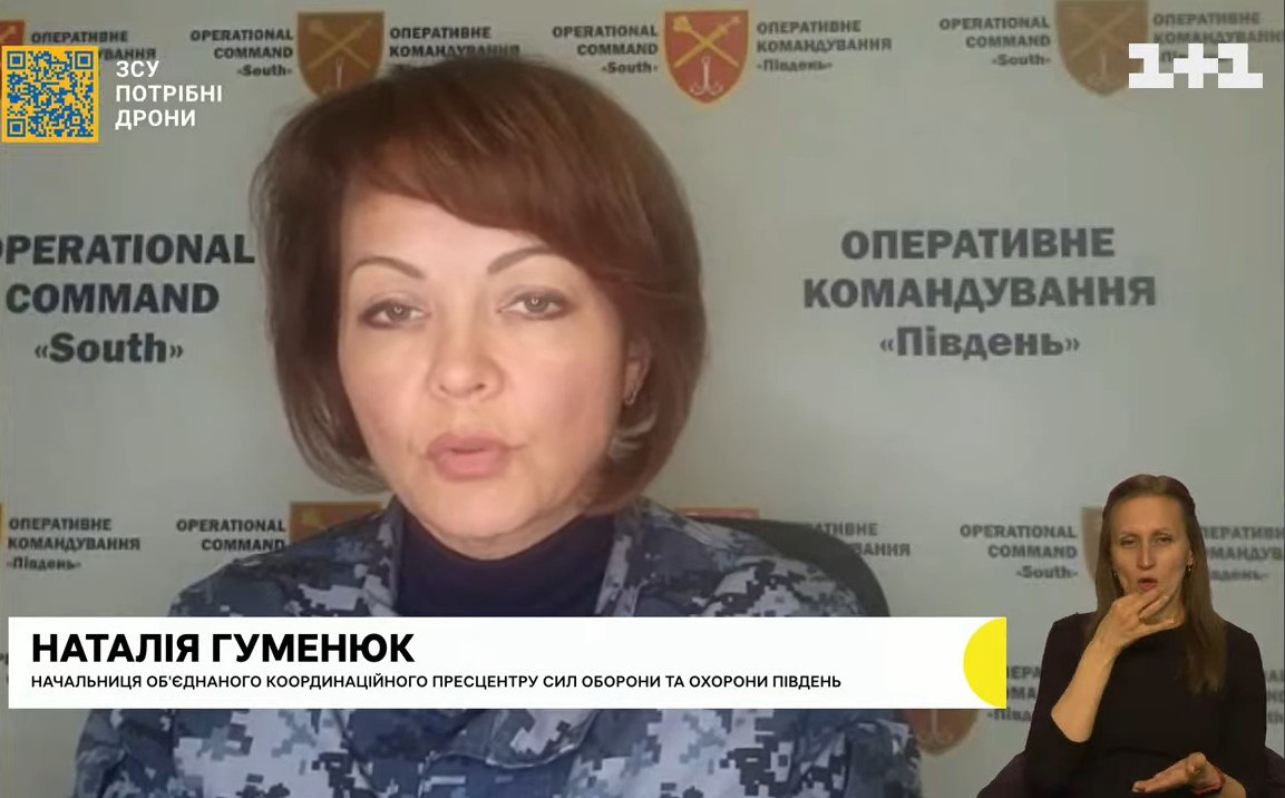 Про це в ефірі «Єдиних новин» заявила начальник об’єднаного координаційного центру сил оборони та охорони «Південь» Наталія Гуменюк.