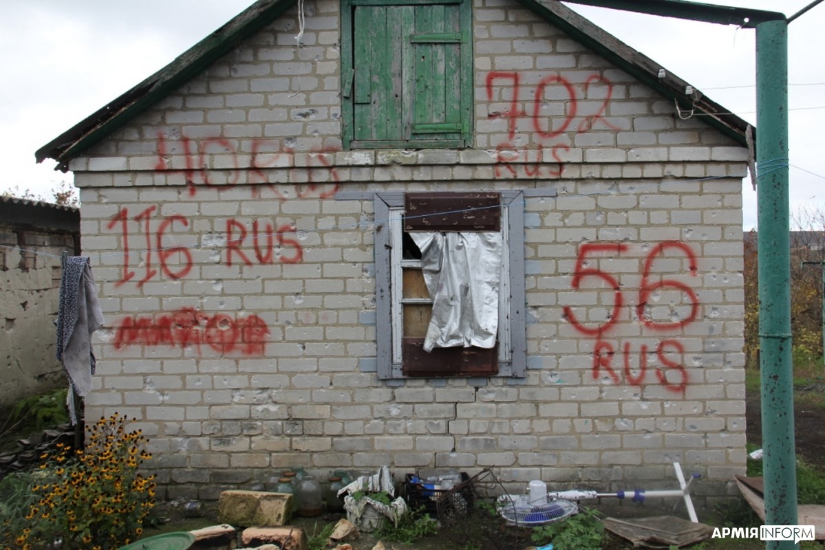 Про це свідчить залишене окупантами на одному з будинків графіті з цифровими кодами регіонів рф, з яких вони прибули. Тож з використанням відкритих джерел було встановлено, що «захищати руцькоязичне населення» прибули мешканці республік башкирія, татарстан, марій ел та калужської і оренбургської областей рф. Тобто тих регіонів, де історично російську мову знають дуже погано.