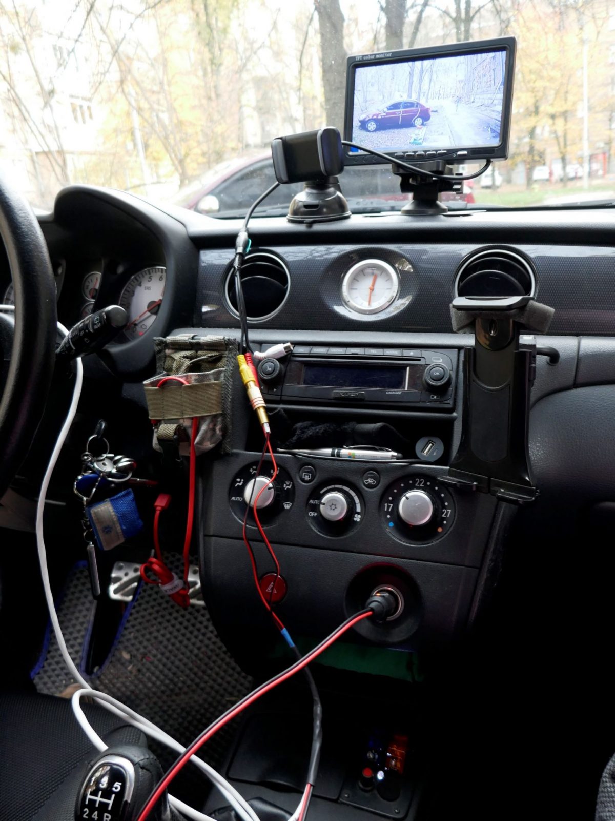 — Тут немає чогось нового, — розповідає Олексій. — Це система нічного бачення для автомобілів. Її може зібрати будь-яка людина, що хоч трохи розуміється на електриці. Вона складається з простих речей: монітор (наприклад, автомобільний для підключення додаткових камер) вартістю 1500–2000 грн, до нього під’єднується сучасна вулична камера спостереження вартістю близько 1000 грн. А далі залишається зробити з’єднання за допомогою дротів і роз’ємів, щоб усе це ввімкнути через прикурювач до бортової мережі авто.