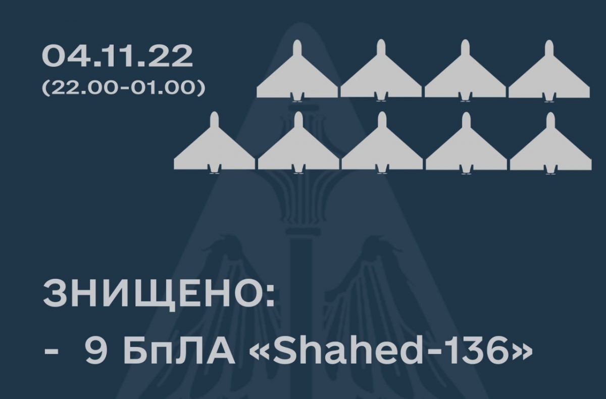 У ніч з 3 на 4 листопада російські окупанти атакували зі східного напрямку іранськими дронами-камікадзе Shahed-136.