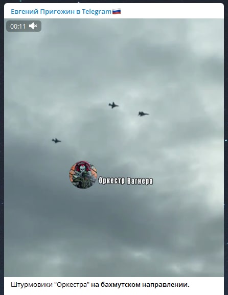 На телеграм-каналі рашиста-олігарха пригожина, який керує бандформуванням російських зеків та найманців «вагнер», було викладено відео, де нібито три російських літаки літають у небі над Донбасом, з підписом «штурмовики оркестру», маючи на увазі неформальну назву злочинного угруповання — «оркестр вагнера». Але в цифрову епоху такі трюки розраховані хіба що на неосвічених та далеких від технологічного розвитку росіян.