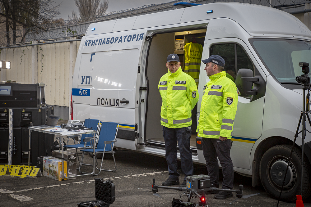 Заступник Голови Національної поліції додав, що за допомогою Посольства США в Україні отримано мобільну лабораторію ДНК-аналізу. Ця лабораторія працювала на місці події у Вінниці під час обстрілу центру міста, а також після обстрілу торгового центру у місті Кременчук. Завдяки сучасному обладнанню лабораторії експерти менш ніж за добу встановили особи всіх загиблих громадян.