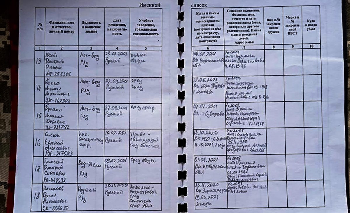 Так, під час одного з успішних рейдів наших хлопців, ймовірно, було знищено інженерно-саперний взвод 1-ї батальйонно-тактичної групи російських окупаційних військ. Окрім трофеїв, до рук наших бійців потрапила і документація офіцерів цього підрозділу. Серед великого оберемку нікому не потрібної писанини нас зацікавив один дуже важливий документ — «Іменний список» цього підрозділу. Іншими словами, повний збір даних на окупантів, що прийшли вбивати українців.