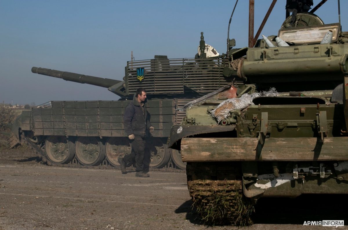 — Ось російський танк, який підбила наша піхота з двох сторін ПТУРом. Ми його відновимо і він продовжить нищити москалів! — усміхається військовослужбовець Сергій.