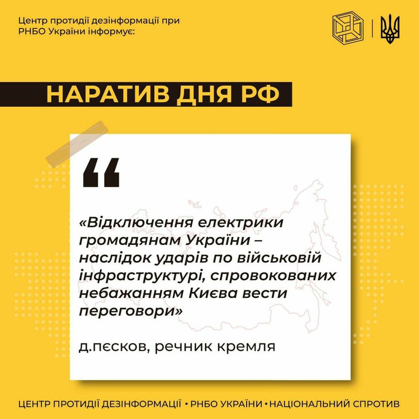 Про цей головний наратив російських ЗМІ повідомляє на своїй сторінці у Facebook Центр протидії дезінформації.