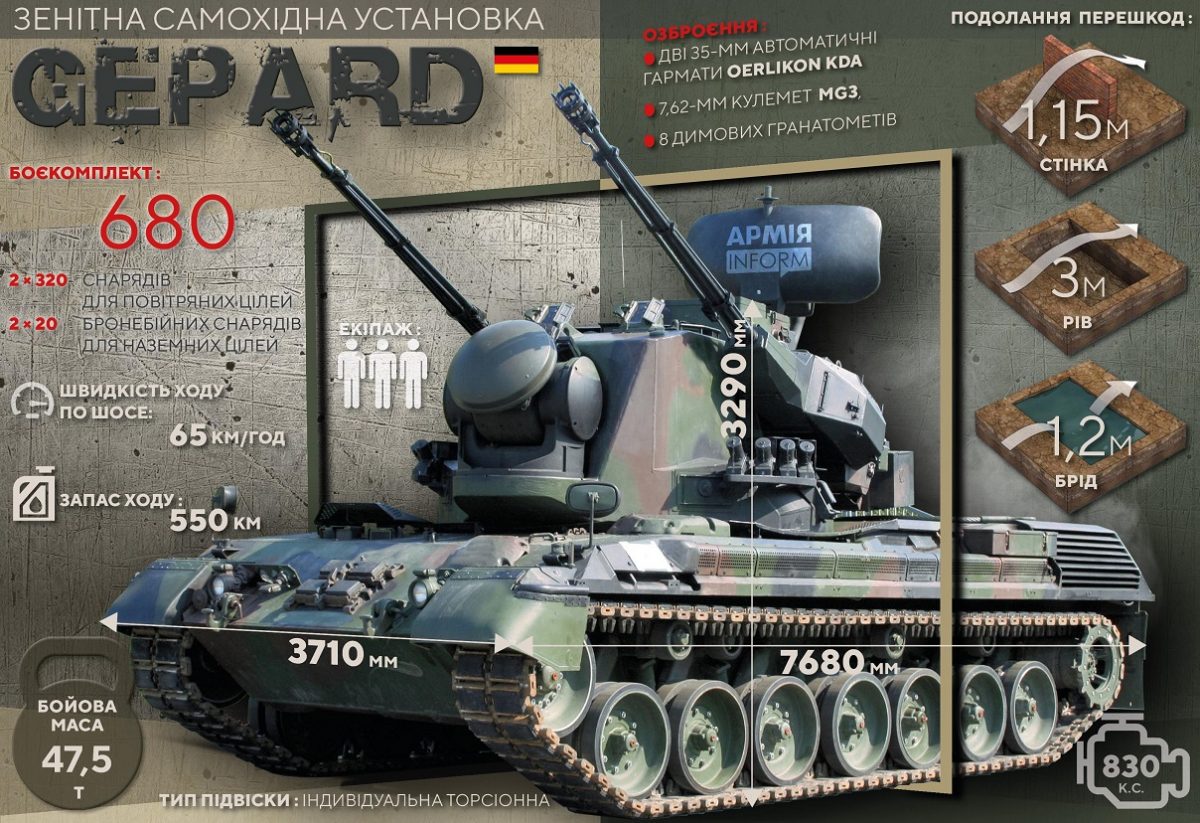 Gepard став ефективною зброєю проти іранських безпілотників Shahed-136. Його використовують для захисту критичної інфраструктури.